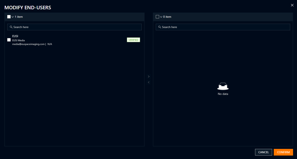 - Click “Confirm” once all the relevant End Users for the order appear on the right side of the tool.