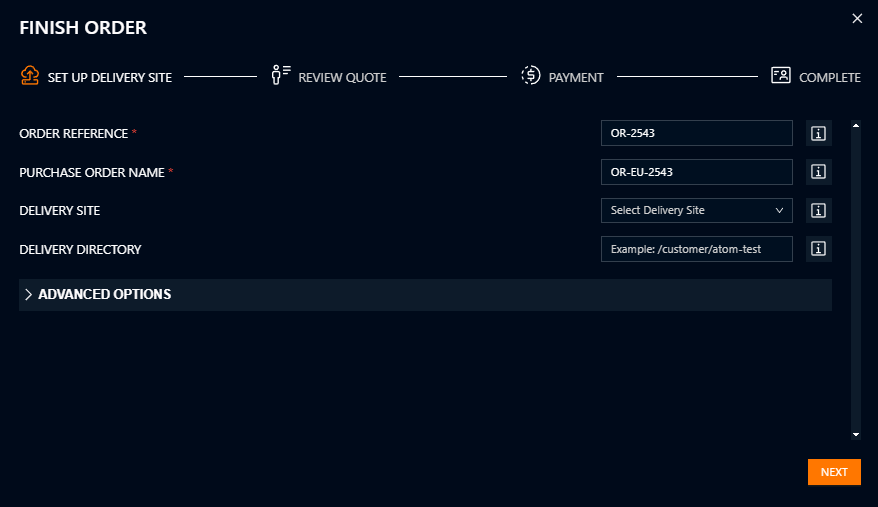 • Label the Order – Assign appropriate identifiers to the order for tracking purposes. You can also apply delivery sites and configure callbacks if needed.