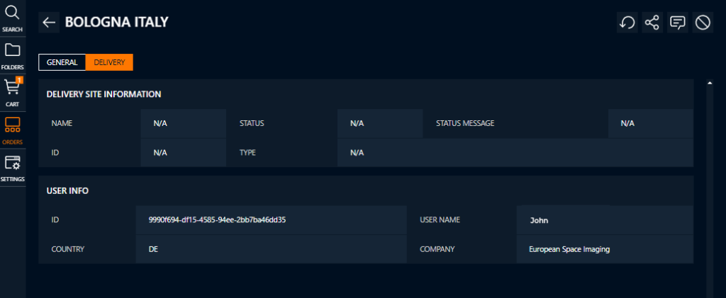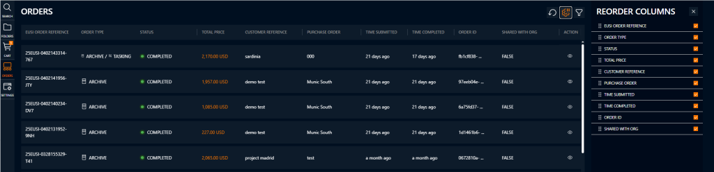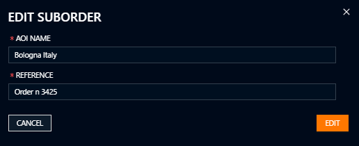 Edit – By clicking the “pencil” icon, you can edit the AOI (Area of Interest) name and the order reference provided.