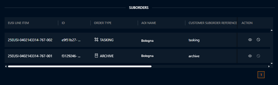 To view more detailed information about a specific order and its associated suborders, click the eye icon located on the right side of each order entry.
